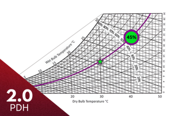 Psychrometrics is the study of the properties of mixtures of air and water vapor. A general knowledge of psychrometrics is very useful in fan application engineering, mainly because the performance of the fan is directly related to the density of the gas. Knowledge of psychrometric principles allows the fan application engineer to measure the amount of water vapor in the air, determine the density of the mixture, and thus accurately predict changes in fan performance. In this self-guided course, you will graphically explore psychrometric properties, such as dry bulb, wet-bulb, relative humidity, dew point, and humidity ratio as they are plotted on the psychrometric chart. Your knowledge of these properties will allow you to accurately calculate density and give you other skills useful in fan application engineering, such as the ability to predict whether condensation will occur in the system. Includes pdf course notes that are handy for future reference, and make it easier for you to follow along, especially if English is not your first language Includes IP - SI spreadsheet calculator for unit conversion You can leave the course and the system will save your progress for when you come back. Explore or re-visit topics in the sequence you desire Learning activities and quiz questions keep you engaged in the topics SI units only Allow at least 2 hours in your schedule for completing this course. Instructor: Ron Wroblewski Course length: 2 hours PDH credits: 2 Read more